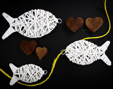 Wiklina to bardzo uniwersalny surowiec, a co za tym idzie, pasuje niemalże do każdego wnętrza. Zawieszki wiklinowe, jakie oferujemy w tej kategorii, to idealne rozwiązanie dla dekoracji okna, witryny sklepowej lub pomieszczenia. Proponujemy delikatne i subtelne wyroby wiklinowe o różnorodnych rozmiarach, co pozwoli na dopasowanie ich do dowolnych aranżacji. Zawieszki wykonane z wikliny to estetyczne artykuły dekoracyjne, które doskonale komponują się z koszami, czy osłonkami wiklinowymi.